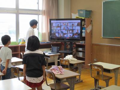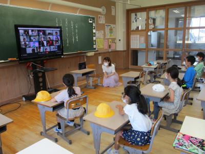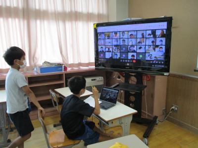 本日は2年、4年、6年のオンライン登校日でした。学童の児童など、タブレットがつながらない児童は、直接学校に来て参加しました。内容は健康観察、宿題の状況報告、校長先生の平和の話、交通安全などの生活の話で、約30分間行いました。画面越しですが、元気な姿や声を見聞きできました。残りの休み期間も病気や事故が無いように過ごすことを願っています。