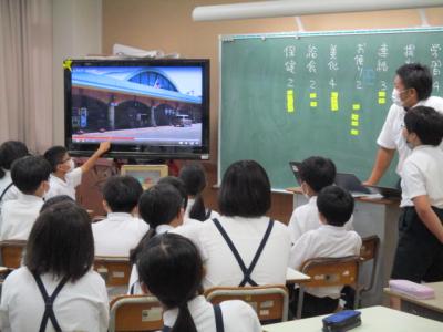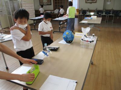 東京から管路管理総合研究所のみなさんに来校いただき、4年生を対象に下水道教室を行いました。4年生は社会科で上水道の学習を行いましたが、家庭で使用された汚水がその後どのようにして海に流されるのか疑問に思っていました。今日は、スライドでの説明やクイズ、実験を通して多くのことを学びました。特に実験では、水にトイレットペーパーとティッシュを入れ溶け方を比べました。どんなに一生懸命かき混ぜても、ティッシュは溶けなかったことから、なぜトイレにティッシュを流してはいけないのかを実感することができました。その他にも、油や髪の毛など、下水道が詰まる原因になる物は流さないことを学びました。この学びをこれからの生活に活かせてほしいと思います。