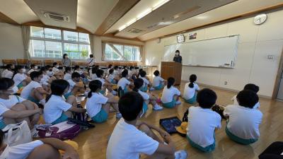 明日から始まる夏休みの生活や宿題について、担任の先生からお話がありました。子どもたちは真剣な表情で聴いていましたが、その意識が40日間続くように、宿題は計画的に行い、規則正しい生活を送り、病気や事故に合わないことを願っています。