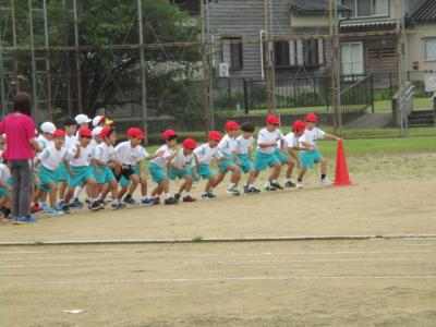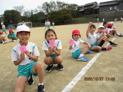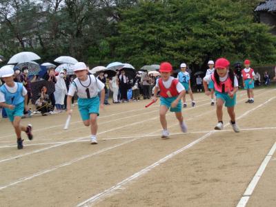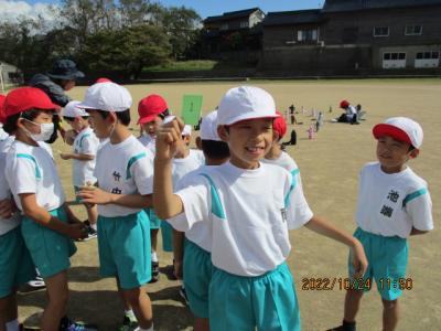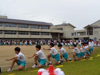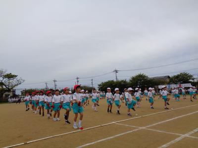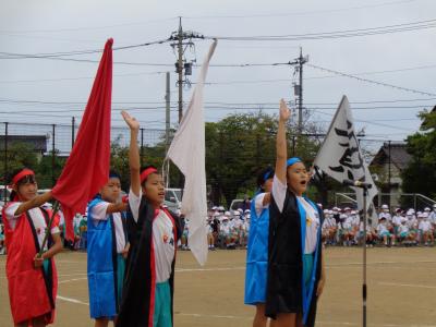 今年もコロナ禍の中で規模を縮小しての開催でした。計画段階で先生方から、表現だけでなく団体競技も行いたいとの意見が出されました。そこで、低中学年は団体競技とダンスを組み合わせることにしました。低学年は玉入れ競技の前にみんなでダンスを踊りました。中学年は一方の学年がボール運びの競技をしているときに応援を兼ねたダンスを踊りました。団体競技と表現を短時間に盛り込んだ欲張りな計画でしたが、子どもたちのがんばりですばらしい競技になりました。高学年は表現のみでしたが、16分にも及ぶ大作でした。7月から6年生が試行錯誤しながら振り付けを考え、それを5年生に教えていました。その活動する姿はやる気に満ちあふれ実に生き生きとしていました。応援団も夏休み中にもかかわらず自主的に集まり準備を進めていました。当日も体全体を使って叫ぶ声の大きさに圧倒されました。閉会式では、がんばった全校児童の姿を見て、みんなで創ったすばらしい運動会だったことを嬉しく思い、子どもたちに拍手を贈りました。小雨の降る中、最後まで子どもたちに温かい声援を送っていただいた保護者の皆様ありがとうございました。
