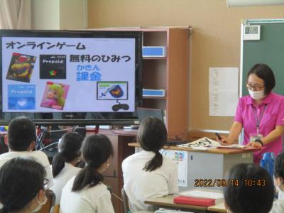 KDDIの細川一仁氏を講師としてお招きし、高学年及び保護者を対象にした非行被害防止講座が行われました。ネット依存、ネットいじめ、誘い出し・なりすまし、個人情報漏洩など実際にあった危険な事例をもとにお話をして下さいました。子どもたちは真剣な表情で聞いていました。今日、学んだことをぜひ家族で話し合い、このような被害に遭わないように取り組んでいただければと思います。