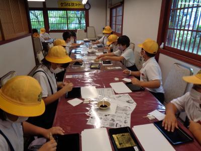 今日の午後から県埋蔵文化センターの職員の方々による出前教室が行われました。縄文時代の暮らしについてお話を聞いたり体験したりしました。勾玉作りでは、比較的柔らかい石を使って形を整えていきましたが、それでも角を丸くするのにかなりの時間がかかり、当時の苦労を実感することができました。黒曜石を使って紙を切る体験では、思いの外よく切れることに驚き、自然物を上手に暮らしに生かしていたことに気付きました。体験を通して今までの学びをより深めることができました。