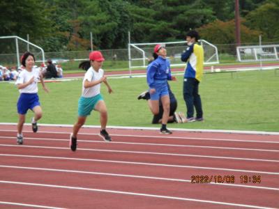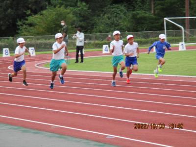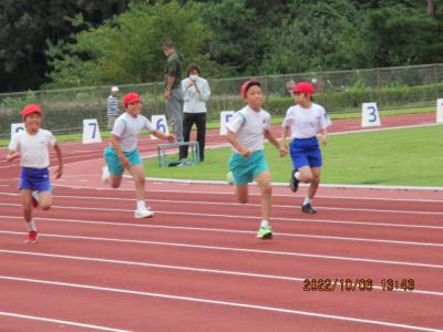 3年ぶりに、うのけ総合公園陸上競技場で、かほく市内の小学6年生が集まり、小学校体育大会が行われました。最初に全員が100m走を行いました。次に個人選択種目として走り幅跳び、走り高跳び、800m走、ロケットボール投げから1種目選んで競技を行いました。最後に対抗リレーとして、1組と2組それぞれから1チームが参加しました。時折小雨が降り肌寒い中でしたが、子どもたちは元気いっぱい競技に臨んでいました。