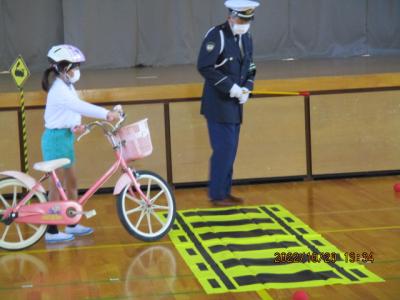 今日の午後から3年生を対象に自転車安全教室を行いました。かほく市防災環境対策課の職員の方々が体育館に信号機や横断補導などを設置しコースを作って下さいました。そのコースを利用して、津幡警察署や交通安全街頭推進隊のみなさんによる指導の下、走行練習をしました。今までビデオを見て知識はありましたが、実際に自転車を運転しながらその場で指導されたことで、より安全な行動が身についたのではないかと思います。ご協力いただいたみなさま、ありがとうございました。