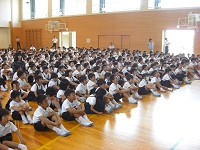 授業参観後、体育館において総会が開かれました。会に先立ち、6名の方に対し、長年にわたるPTA活動への感謝状と記念品が贈られました。その後、今年度の役員、事業計画、収支予算等について承認を受けました。