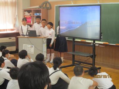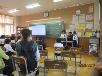 「こんなときはどうする?」という教師の問いかけに,子どもたちはパネルを見ながら,積極的に意見を発表していました。「いじめを注意したら自分もいじめられるかもしれない」といった不安な気持ちを抱きながらも、自分にできることを真剣に考えていました。