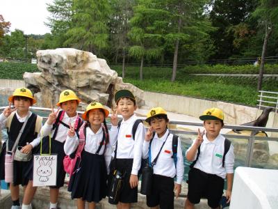 10月20日、1,2年生が校外学習でいしかわ動物園に行きました。雨が心配されたので、少し予定を早めて行動しました。縦割りグループで動物の様子や飼育員さんのお仕事を見て回りました。普段は上級生にお世話をしてもらうことの方が多い低学年ですが、今日は2年生が1年生をつれてグループ行動をする中でそれぞれに成長した姿を見ることができました。