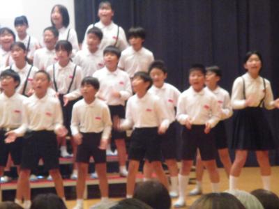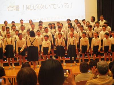 5年生が市小中学校音楽会で合奏を披露しました。曲は「風が吹いている」です。先日行った、本校150周年記念式典においても歌いましたが、今回は、初めと終わりの部分を変更し、より変化に富んだ合奏としました。小学校の部の最後にふさわしい、圧倒的な歌声が、会場の河北台中学校講堂に響き渡りました。歌い終わった子どもたちからは、やりきった満足感が伝わってきました。