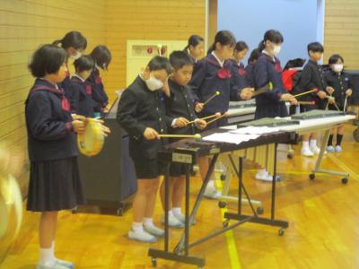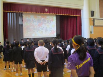 集会の最後にミュージッククラブの演奏で今月の歌「もみじ」を歌いました。
