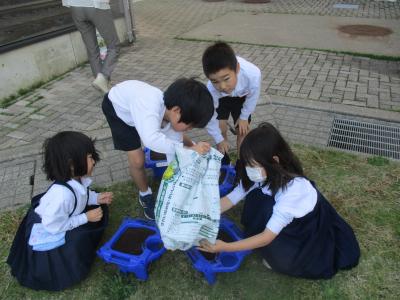 今日から1週間、学校の公開週間がスタートしました。先月は学習発表会を参観して頂きましたが、公開週間では普段の様子を参観して頂きます。今日も、午前中、各クラスに数名の保護者の方々が参観されていました。1年生はチューリップの球根を観察した後、アサガオを育てていた鉢に土入れをし、球根を植えました。来年の春、きれいな花が咲く頃には1年生も2年生に進級していることでしょう。