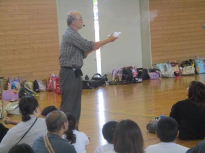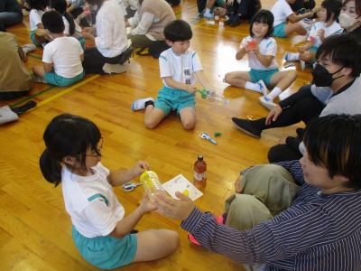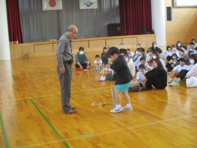 2学年PTCA活動として、『科学実験教室!』を行いました。サイエンス・レンジャーの中村順吉先生をお招きして「空気のちからの不思議や驚き」を体験しました。子どもたちは、空気の重さがあることを知り驚いていました。また、ペットボトルを使って空気砲を作り、空気の流れを体で感じていました。普段できない貴重な体験ができました。