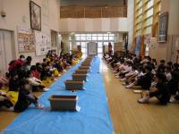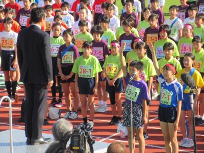 その後、いしかわっこ駅伝に出場する15名の選手・マネージャーの紹介があり、男女それぞれの代表が、本番に向けての意気込みを語りました。今までかけあしタイムや放課後に練習を重ねてきましたが、毎回、少しでもタイムを縮めようと真剣に練習に取り組む姿は本当に立派でした。本番では今まで頑張った自分たちの力を信じて、練習の成果を発揮し、悔いの無い走りをしてくれると思います。頑張れ!高松っ子。