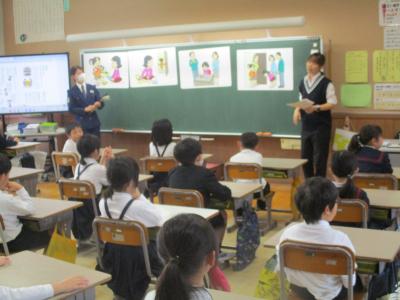 本日は5年生が県警察本部の職員の方に来て頂いて、いじめについてのお話を聞きました。