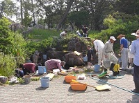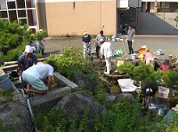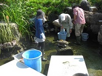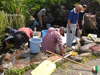 前庭の池掃除を行いました