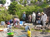 本日、午前に鯉の飼育している池の掃除を行いました。地域のボランティア(若者からご年配まで、幅広い年齢層の方)13名が参加してくれました。