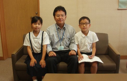 4年生が国語で新聞作りをしています。記事を集めるためにいろいろな人にインタビューをしています。先週、校長室にもやってきたので、記念撮影を、パチリ。今日もインタビューの予約が入っています。ちょっとした有名人になった気分です(笑) 礼儀あいさつ、用件の伝え方、聞いたことをメモする、すべて実生活に活用できる学力となっていきます。