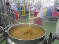 給食センターでは、たくさんの豚輝の挽肉をしっかり炒めてキーマカレーを作りました。