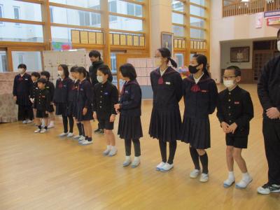 1月の生活目標「進んであいさつをしよう」の取り組みとして、朝のあいさつ運動を行っています。