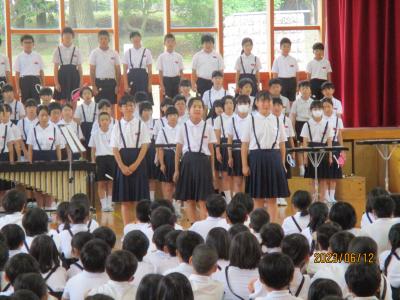 5年生が明日の音楽会本番に向けて、全校児童の前でリハーサルを行いました。今までの練習の成果を感じさせられる素晴らしい演奏と合唱でした。明日の本番もきっと今日以上の演奏、歌声を聞かせてくれることでしょう。がんばれ!5年生。