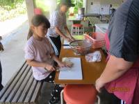 2日目の活動は「野外炊飯」でカレーライスを作りました。かまど、ごはん、カレーライスの3つの係に分かれて作業を進めました。どのグループもおいしいカレーが仕上がり、完食しました。後片付けも完璧で、所のスタッフの方に褒められました。