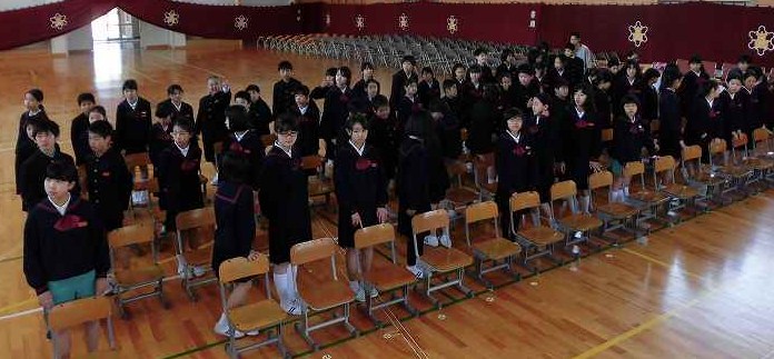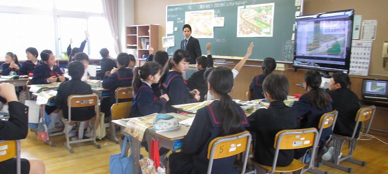 6年1組のみんなとPTAの方とあいさつの輪が広がるように、