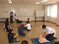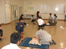 毎年実施しておりますが、こうした訓練は、何回行っても、これで十分と言うことはありません。心臓マッサージや人工呼吸、AEDのセットなどは、やってみると、やはり緊張し動揺します。いざというときに備えて少しでも対応できるよう準備しておくことの大切さを感じます。消防本部の皆様ありがとうございました。