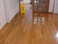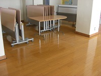 今日と明日は、市が手配してくれたワックスがけが行われました。本日は、1,2階を中心に行っています。塗り終えた場所は、柱や窓が床面に映って見える程の輝きです。これで気持ちよく2学期を迎えられそうです。