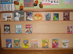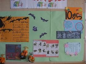 さて、本校の図書室の通称は「ひばりが丘図書館」です。ひばりが丘は、校歌の歌詞にも登場します。今は、読書習慣が近く、季節はハロウィンということで、学校司書が、雰囲気に合った掲示やレイアウト、本の紹介コーナーなどを整え、児童を迎えています。本校は、読書が好きな児童が多いと思いますが、こうした環境作りも影響しているといえます。