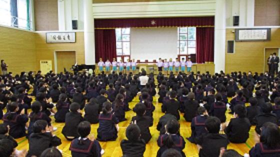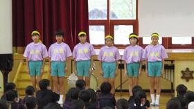 明日は、いしかわっ子駅伝が西部緑地公園陸上競技場で開催されます。本日の学校集会において壮行会を行いました。選手の力強い決意に大きな拍手が送られました。