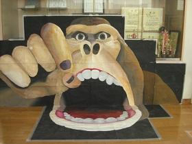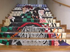 本校に巨大なトリックアートが出現しました。足を踏み外したら空から転落!巨大ゴリラに食べられる!など、驚きと楽しさでいっぱいの作品が今日からしばらくの間本校で展示されています。作者は、高松中学校創作部のみなさんで、顧問の山崎先生が設置してくださいました。また、大人気アニメ「鬼滅の刃」を思わせる大きな階段アートもあります。子どもたちは大喜びです。高松中学校のみなさん、ありがとうございます。