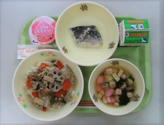 すしめし ばらずしのぐ さわらのさいきょうやき すましじる ももゼリー 牛乳