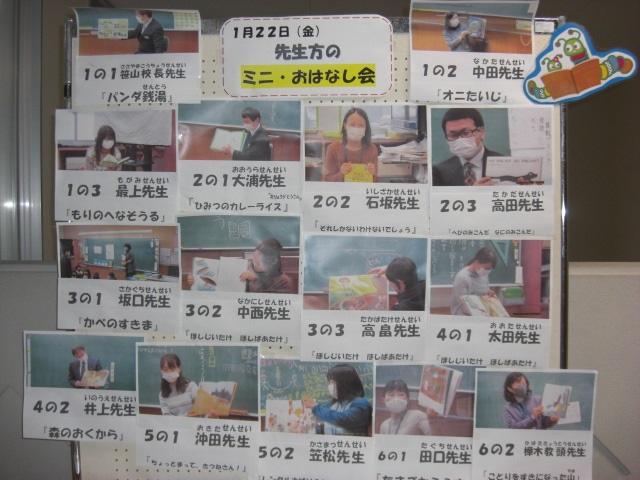 金曜日に、職員が各クラスで読み聞かせを行うお話会を実施しました。当日まで児童はどの先生がやってくるのかを知りませんので、少しわくわしながら待ちました。そして、現れた先生が挨拶をして本を読みました。どのクラスの児童も真剣に聞きながら、物語の世界に浸っていました。この日読んだ本は、図書室でも借りられますので、ぜひ読んでほしいです。