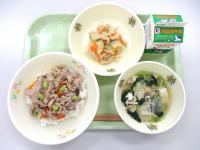 6月は、「玉ねぎ」「豚輝」「小松菜」などの地場産物を使った献立です。