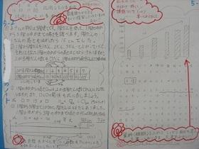 現在2年生以上の学年では、自分で学習を進める「自学ノート」に取り組んでいます。1階には、参考にしてほしい書き方の例を掲示しています。書くことで記憶に残りやすくなり、上手に書けると学んだことが整理されると言われます。学んだことを復習する習慣を身に付けていきたいですね。