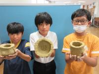その後,土器づくりの体験を行いました。粘土で底を作った後,ひも状にした粘土を積み上げ,ひもとひもの間をつないで土器の形を作っていきました。6年生は,それぞれ作りたい形の土器を楽しそうに作っていました。土器づくりを通して,生活に必要なものを自分たちで工夫して作っていた弥生人のすごさも感じられたようです。