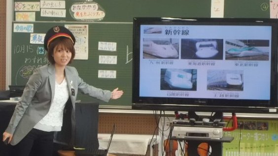 ゲストティーチャーをお招きしました。北陸新幹線のいろいろなことをクイズ形式で紹介していただきました。雪に強い秘密、料金、名前、金沢駅のホームの様子、どれもわくわくすることばかりでした。来年の春3月14日が待ち遠しいです。
