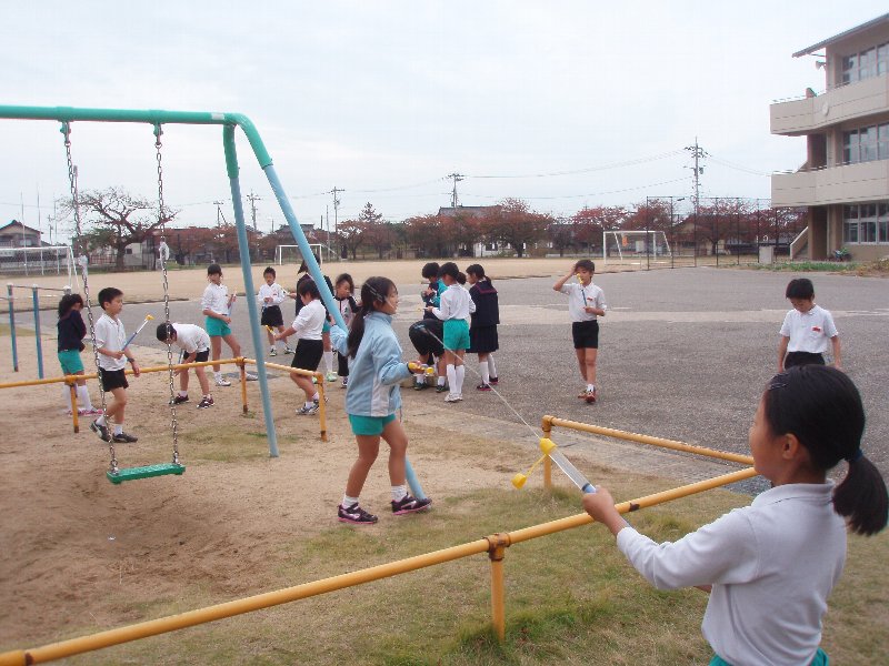 良い天気に恵まれ、毎日かけ足運動を続けています。たくさん走っています。走った数をきろくしています。たくさん走るとカードを新しくしていきます。1枚目は石川県一周、2枚目は日本一周、3枚目は世界一周、4枚目は宇宙旅行です。4枚目のカードが足りなくなりました。それくらいたくさん運動場を走っています。4枚目が終わった人は、教頭先生からごほうび、それも超えた人は校長先生からごほうびとなりました。ここまでみんながんばることができると思いませんでした。マラソン大会の日が楽しみです。