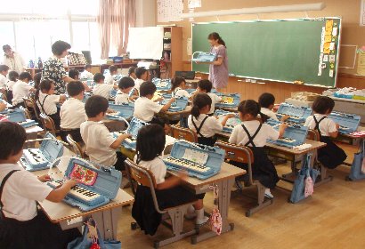 今日は1年生の教室に「けんばんハーモニカ」の先生がやってきました。