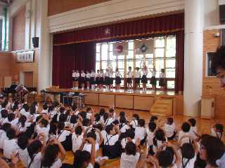 全校集会では1ヶ月毎日歌って上手になった歌を全校で体育館に響かせました。