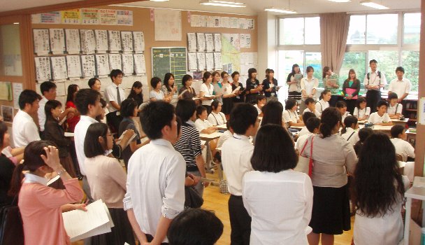 朝の応援歌練習の様子