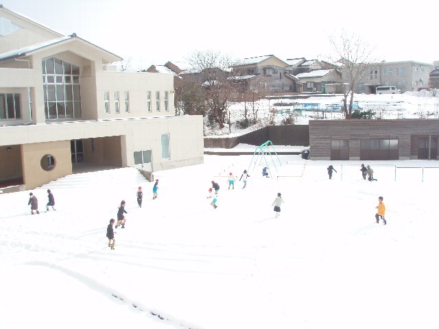 子どもたちは雪が大好き。今日の長休みの様子です。