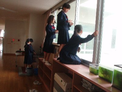 最終日、学校では学級それぞれいろいろなことに取り組んでいました。授業、机や身の回りの片付け、玄関の下駄箱をきれいに、2学期のふり返りと3学期のめあての話、お楽しみ会、冬休みの過ごし方等々・・・