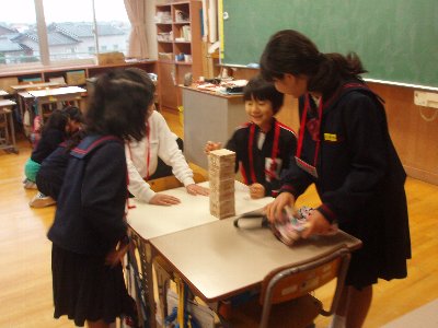内容は、各教室でなかよしグループのメンバーが顔を合わせて楽しく遊ぶことでした。かるた、トランプ、ぼうずめくり、福笑い、すごろくなど高学年がいつものようにリードしてくれました。