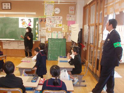 今日のゲストティーチャーは、津幡警察署生活安全課 越能 少年特犯主任に来ていただきました。2年生3クラス1時間ずつていねいにしてはいけないこと、勝手にひとのものをとってはいけないことを習いました。写真見て分かるように黒板に貼るパネルを持ってきて下さり、とってもわかりやすい学習でした。