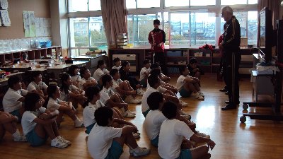 今月、ACミランサッカースクールコーチ、クラウディオゾラさんが3日間にわたってスタッフの方々と高小を訪れました。目的は、イタリアのことを教えて下さることと一流のアスリートの「哲学」を子どもたちに伝えることです。対象は6年生、教室の話だけでなく、実際に運動場に出て子どもたちと体を動かして下さる場面もありました。将来に対して子どもたちが夢を持てるとっても良い機会になりました。今後も6年生は、ゲストを招いてキャリア教育を続けていく予定です。 給食はちょっと苦手だったようです(笑)