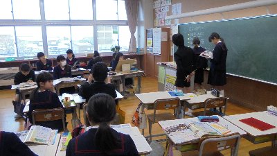 午前中の長休みを利用して「なかよし新年会」をしました。たてわりのなかよしグループで集まって正月らしい遊びをしました。トランプやかるたが多かったでしょうか。今年もなかよし班も学校全体もなかよく活動していければと思います。