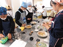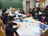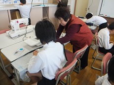 6年生は、それぞれ自分のお気に入りのエプロンを制作しています。