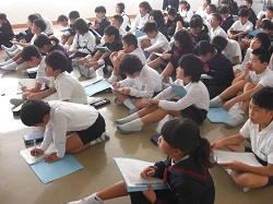 今日は4年生が「共に生きる」をテーマに、聴覚障害の視点から学習を行いました。市内から濱本ご夫妻をお招きし、聴覚障害や、コミュニケーションで努力をされたこと、様々な思いについてお話を伺いました。また、手話についても教えていただきました。市社会福祉協議会、要約筆記のみなさんにもお世話になり、貴重な学びの場となりましたことを感謝いたします。ありがとうございました。