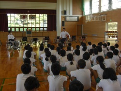 北風さんは、主に競技について、ルールやおもしろさ、素晴らしいテクニックを教えてくれました。ゴールを決める度に歓声が上がりました。児童は、元気いっぱいに車いすを動かしてボールを追いかけました。