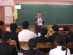 稲垣教頭先生には、普段児童の身近で仕事をしている教員の仕事について説明がありました。なぜ先生をめざしたか、免許を取るための方法や採用のされ方などから、夏休み中の仕事などについてもお話をしました。